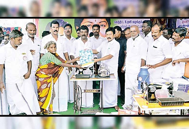 விழாவில் வடக்கு மாவட்ட அ.தி.மு.க. செயலாளரும், தமிழக சட்டத்துறை அமைச்சருமான சி.வி.சண்முகம் கலந்துகொண்டு வேட்டி- சேலை, தையல் எந்திரம், பால்கேன், சமையல் கியாஸ் அடுப்பு, பாத்திரங்கள் என 2 ஆயிரம் பேருக்கு ரூ.5 லட்சம் மதிப்பில் நலத்திட்ட உதவிகளை வழங்கினார்.