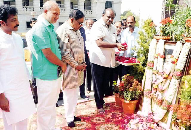 மகாத்மா காந்தி நினைவு தினத்தையொட்டி பெங்களூரு விதான சவுதா வளாகத்தில் உள்ள அவரது சிலையின் அடியில் வைக்கப்பட்டிருந்த உருவப்படத்திற்கு முதல்-மந்திரி குமாரசாமி மாலை அணிவித்து மரியாதை செலுத்தினார். அதன் பிறகு அவர் நிருபர்களுக்கு பேட்டி அளிக்கையில் கூறியதாவது:-