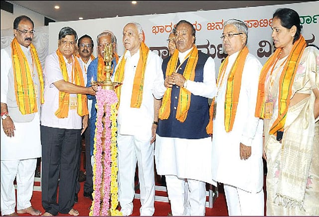 இந்த கூட்டத்தில் மத்திய மந்திரி ரமேஷ் ஜிகஜினகி, எம்.பி.க்கள் ஷோபா, நளின்குமார் கட்டீல், ஸ்ரீராமுலு எம்.எல்.ஏ.,, முன்னாள் முதல்-மந்திரி ஜெகதீஷ் ஷெட்டர் உள்பட பலர் கலந்து கொண்டனர்.