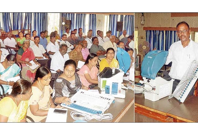 மேலும் வாக்காளர்கள் மின்னணு வாக்குப்பதிவு எந்திரத்தில் விருப்பமான சின்னத்துக்கான பொத்தானை அழுத்தியதும், வாக்குப்பதிவை உறுதி செய்யும் எந்திரத்தில் அது தெரிவது குறித்து விளக்கினார். வாக்களித்த பின்னர் 7 வினாடிகள் வாக்களித்த சின்னத்தை அந்த எந்திரத்தில் பார்க்கலாம்.