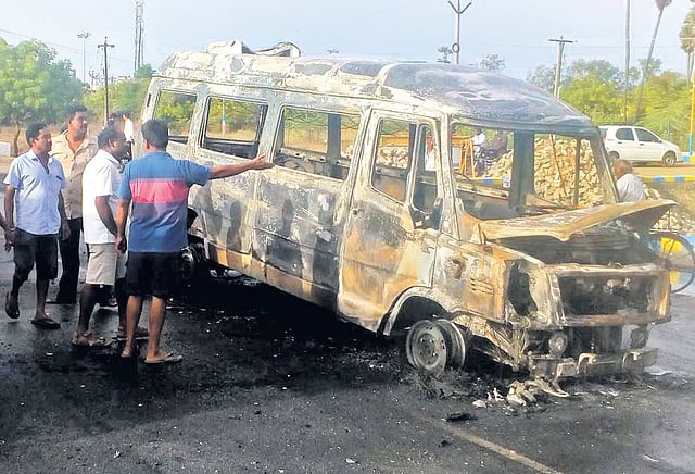 இந்த தீ விபத்து காரணமாக மாமல்லபுரம் கிழக்கு கடற்கரை சாலையில் சிறிது நேரம் போக்குவரத்து பாதிப்பு ஏற்பட்டது. வேனில் உள்ள பேட்டரியில் ஏற்பட்ட மின்கசிவு காரணமாக தீ விபத்து ஏற்பட்டதாக தெரிகிறது. இதுபற்றி மாமல்லபுரம் போலீஸ் இன்ஸ்பெக்டர் ரவிக்குமார் வழக்குப்பதிவு செய்து விசாரித்து வருகிறார்.