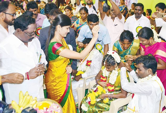 இந்த நிகழ்ச்சியில் அரசு அலுவலர்கள், மணமக்களின் பெற்றோர் மற்றும் உறவினர்கள் என பலர் கலந்து கொண்டனர்.