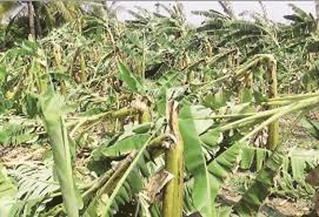 ஆனால் சூறைக்காற்றுக்கு வாழை மரங்கள் முறிந்து விழுந்தும், ஆலங்கட்டி மழை காரணமாக மாங்காய்கள் அழுகும் அவல நிலை ஏற்பட்டுள்ளதால் விவசாயிகள் கவலை அடைந்துள்ளனர். சூறைக்காற்றுக்கு சாய்ந்த வாழை மரங்களை வருவாய்த்துறை மூலம் கணக்கெடுத்து அரசு உரிய இழப்பீடு வழங்க வேண்டும் என்று விவசாயிகள் கோரிக்கை விடுத்துள்ளனர்.