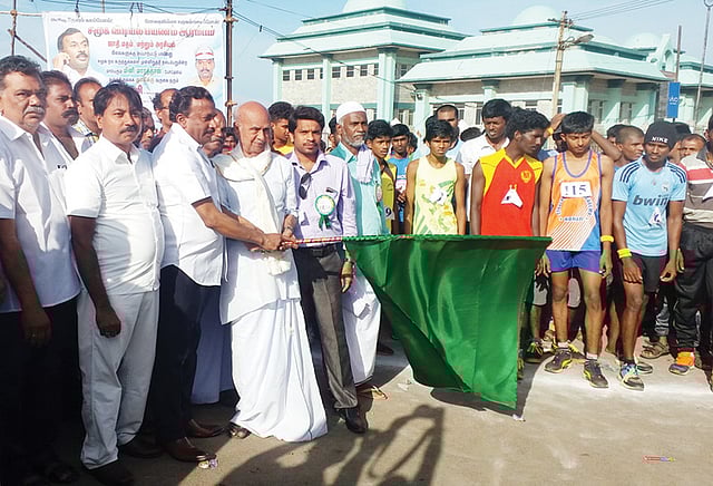 இதன் தொடக்க நிகழ்ச்சி காமராஜர் மணிமண்டபம் முன்பு நடந்தது. நிகழ்ச்சிக்கு வக்கீல் ஸ்ரீதரன் தலைமை தாங்கினார். முன்னாள் எம்.எல்.ஏ. முகமது இஸ்மாயில், அகஸ்தீஸ்வரம் வட்டார மதசார்பற்ற ஜனதாதள தலைவர் தியாகராஜன், ஆர்.எஸ். பார்த்தசாரதி ஆகியோர் முன்னிலை வகித்தனர். இந்த போட்டி 15 வயதுக்கு உள்பட்ட ஆண்கள், பெண்களுக்கு தனித்தனியாகவும், 15 வயதுக்கு மேற்பட்ட ஆண்கள், பெண்களுக்கு தனித்தனியாக என 4 பிரிவுகளில் நடந்தது. ஆண்கள் பிரிவுகளுக்கான போட்டியை சென்னை முன்னாள் மேயரும், மனித நேய ஐ.ஏ.எஸ். அகாடமி நிறுவனருமான சைதை துரைசாமி தொடங்கி வைத்தார்.