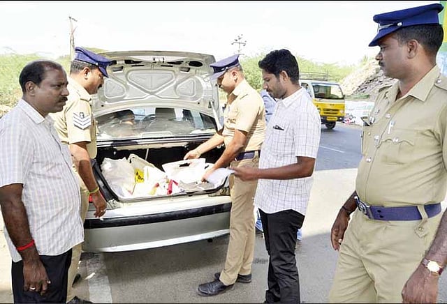 இதனை கண்காணித்து தடுக்க மாவட்டந்தோறும் பறக்கும் படை மற்றும் நிலையான கண்காணிப்பு குழுக்கள் அமைக்கப்பட்டுள்ளது. இந்த குழுக்களில் ஒரு அரசு அலுவலர், ஒரு போலீஸ் சிறப்பு சப்-இன்ஸ்பெக்டர் மற்றும் 4 ஏட்டுகள் என 6 பேர் பணியில் இருப்பார்கள். இந்த குழுவினர் சுழற்சி முறையில் 24 மணி நேரமும் பணியில் இருந்து முக்கிய சாலைகளில் தீவிர வாகன சோதனை மேற்கொள்ள உத்தரவிடப்பட்டுள்ளது.