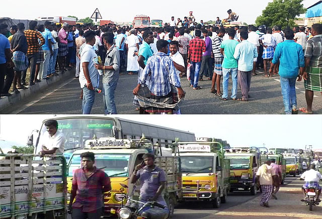 எனவே சம்பந்தப்பட்ட போலீஸ் மீது நடவடிக்கை எடுக்க வேண்டும் என்று கூறி ஒரு ஜல்லிக்கட்டு காளை யுடன் வேனை சாலையில் குறுக்கே நிறுத்தி மறியலில் ஈடுபட்டனர். மேலும் அந்த வழியாக மாடுகளை ஏற்றி வந்த மற்ற வேன் டிரைவர்களும் ஆதரவு தெரிவித்து சாலை மறியலில் ஈடுபட்டதோடு, ஒவ்வொரு வாரமும் இதே போன்று தான் நெடுஞ்சாலை ரோந்து போலீசார் தொடர்ந்து பணம் கேட்டு தொந்தரவு செய்வதாகவும் குற்றம்சாட்டி நூற்றுக்கணக்கானோர் தொடர்ந்து மறியலில் ஈடுபட்டனர்.