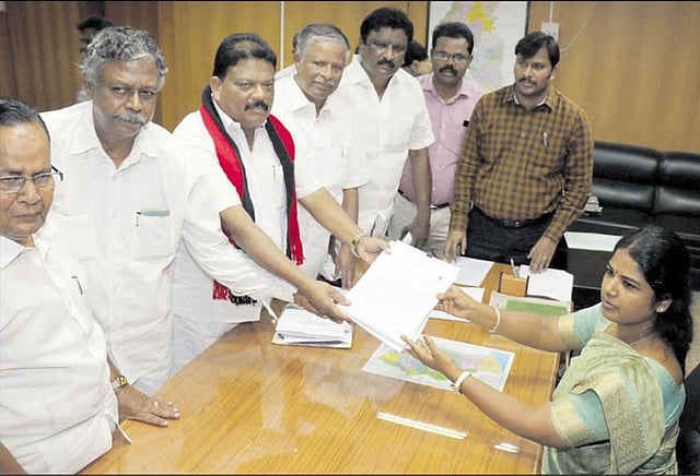 தி.மு.க. மாற்று வேட்பாளரான ஞானதிரவியத்தின் மகன் சேவியர் செல்வராஜ் கலெக்டர் ஷில்பாவிடம் வேட்புமனு தாக்கல் செய்தார்.