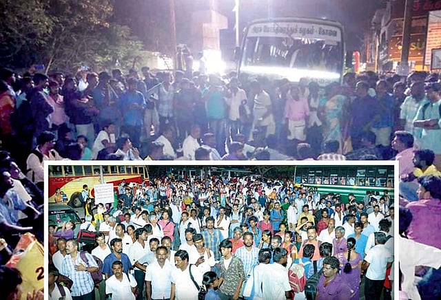 இதையடுத்து போராட்டத்தில் ஈடுபட்டவர்களை போலீசார் லேசான தடியடி நடத்தி அங்கிருந்து கலைத்தனர். இதனால் அங்கு சிறிது நேரம் பரபரப்பு ஏற்பட்டது. இது மட்டுமின்றி திருப்பூர் ரெயில் நிலையத்திலும் வழக்கத்திற்கு அதிகமான கூட்டம் இருந்தது. கன்னியாகுமரி, சென்னை உள்ளிட்ட ரெயில்களிலும் வழக்கத்திற்கு அதிகமாகவே பயணிகள் பயணித்தனர்.