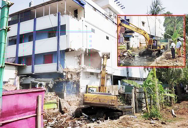 நீர்நிலைகளில் உள்ள ஆக்கிரமிப்புகளை அகற்ற வேண்டும் என்று ஐகோர்ட்டு உத்தரவிட்டதை தொடர்ந்து, லால்குடி கிளை நீதிமன்றம் அருகே மணக்கால் வாய்க்கால் கரையில் ஆக்கிரமித்து கட்டப்பட்டிருந்த தனியார் ஓட்டல் மற்றும் அதனை ஒட்டியுள்ள 3 அடுக்குமாடி வணிக வளாகம் ஆகியவை பொதுப்பணித்துறை உதவி பொறியாளர் கோபிகிருஷ்ணன், உதவி செயற்பொறியாளர் ஜெயராமன், தாசில்தார் சத்தியபால கங்காதரன், பேரூராட்சி செயல் அலுவலர் குமரன் ஆகியோர் மேற்பார்வையில் நேற்று பொக்லைன் எந்திரம் மூலம் இடித்து அகற்றப்பட்டன.