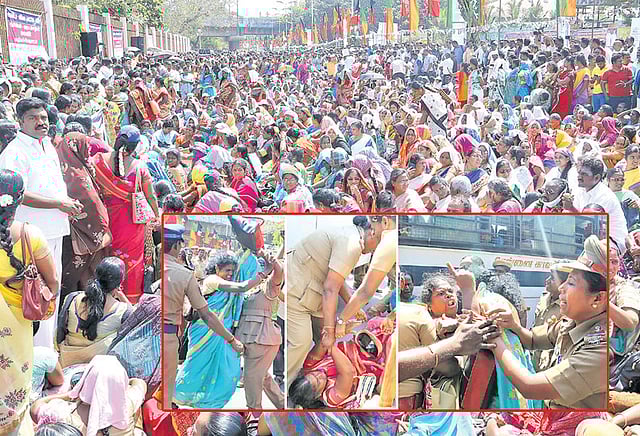 ஆனால் அவர்கள், கலைவாணர் அரங்குக்கு வருகை தரும் பிரதமர் மற்றும் முதல்-அமைச்சரை சந்தித்து முறையிட அனுமதிக்க வேண்டும், என்று கேட்டனர். அதற்கு போலீசார் அனுமதி மறுக்கவே, தலைமைச் செயலகம் நோக்கி பேரணியாக நடக்க தொடங்கினர்.