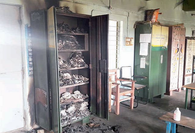 இந்நிலையில் நேற்று காலை 8 மணிக்கு பள்ளியை துப்புரவு செய்ய தேவி வந்தார். அப்போது தலைமையாசிரியை அறைக்கு பக்கத்தில் உள்ள அறையை சுத்தம் செய்ய கதவை திறக்கும் போது அங்கிருந்து புகை வந்தது. இதையடுத்து அவர் உள்ளே சென்று பார்த்த போது அங்கு பள்ளி ஆவணங்கள் வைக்கப்பட்டிருந்த பீரோவில் இருந்து தீ படித்து புகை வந்தது. மேலும் பீரோவின் ஒரு கதவு திறந்த நிலையில் புகை வந்தது. இதைக்கண்டு அதிர்ச்சியடைந்த தேவி பள்ளி அருகில் இருந்தவர்களை அழைத்து வந்து தண்ணீரை ஊற்றி தீயை அணைத்தனர். ஆனால் அதற்குள் பீரோவில் இருந்த ஆவணங்கள் முழுவதும் எரிந்து நாசமாயின.