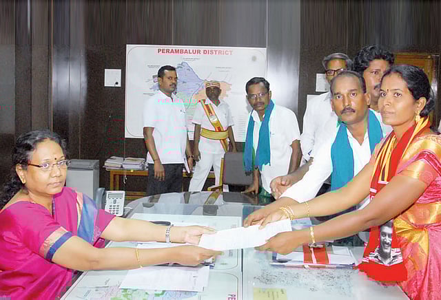 அதன்படி பெரம்பலூர் நாடாளுமன்ற தொகுதியில் போட்டியிடும் வேட்பாளர்கள் பெரம்பலூர் மாவட்ட கலெக்டர் அலுவலகத்தில் தேர்தல் நடத்தும் அதிகாரியும், கலெக்டருமான சாந்தாவிடமும், பெரம்பலூர் பழைய பஸ் நிலையம் அருகே உள்ள பெரம்பலூர் வருவாய் கோட்டாட்சியர் அலுவலகத்தில் முதன்மை உதவி தேர்தல் நடத்தும் அதிகாரியும், வருவாய் கோட்டாட்சியருமான விஸ்வநாதனிடமும் காலை 11 மணி முதல் மாலை 3 மணி வரை வேட்பு மனு தாக்கல் செய்யலாம் என்று ஏற்கனவே அறிவிக்கப்பட்டிருந்தது.