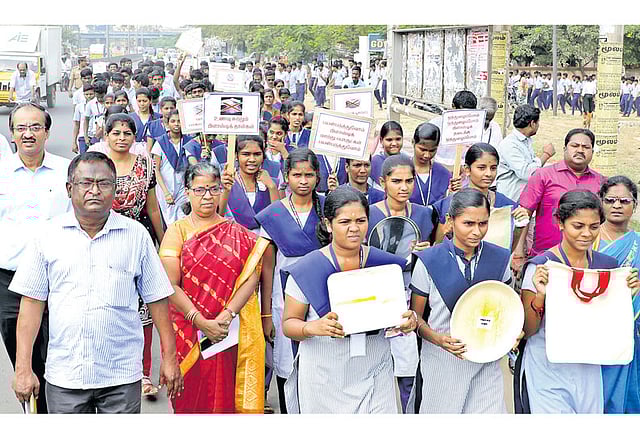 நிகழ்ச்சியில் பங்கேற்ற ஐ.டி.ஐ. மாணவ-மாணவிகளிடம் பிளாஸ்டிக் தீமைகள் குறித்து அதிகாரிகள் விளக்கம் அளித்தனர். அதனைத் தொடர்ந்து ஐ.டி.ஐ. மாணவ- மாணவிகள் பேரணியாக சென்றனர். பிளாஸ்டிக் தீமைகள் குறித்த கோஷங்கள் எழுப்பியும், பாக்கு மர தட்டுகள், சில்வர் பாத்திரங்கள், துணிப்பைகள் உள்ளிட்டவைகளை கையில் ஏந்தியபடியும் சாலைகளில் பேரணியாக நடந்து பொதுமக்களிடம் விழிப்புணர்வு ஏற்படுத்தினர்.