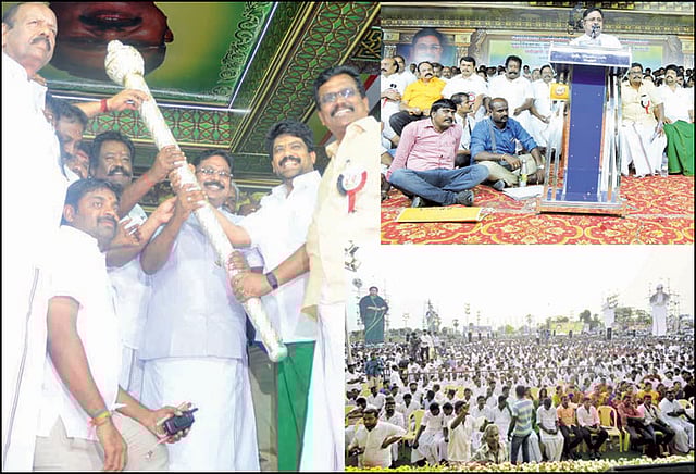 விழாவிற்கு கட்சியின் துணை பொதுச்செயலாளர் டி.டி.வி.தினகரன் எம்.எல்.ஏ. தலைமை தாங்கி, பல்வேறு நலத்திட்ட உதவிகளை வழங்கினார். தொடர்ந்து அவருக்கு புதுக்கோட்டை மாவட்ட அம்மா மக்கள் முன்னேற்ற கழகத்தின் சார்பில், ஆளுயர மாலை அணிவித்து, செங்கோல் மற்றும் வீரவாள் பரிசாக வழங்கப்பட்டது.
