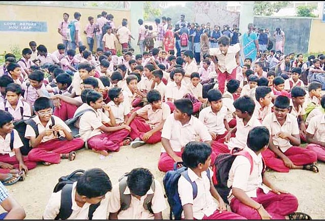 இந்தநிலையில் இந்திய மாணவர் சங்கம், இந்திய ஜனநாயக வாலிபர் சங்கம் ஆகியவை சார்பில் போராட்டம் நடந்தது. மாணவ மாணவிகள் வகுப்புகளை புறக்கணித்து பள்ளி முன்பாக நடந்த இந்த போராட்டத்தில் கலந்து கொண்டனர். இதனால் அந்த பகுதியில் பரபரப்பு ஏற்பட்டது.