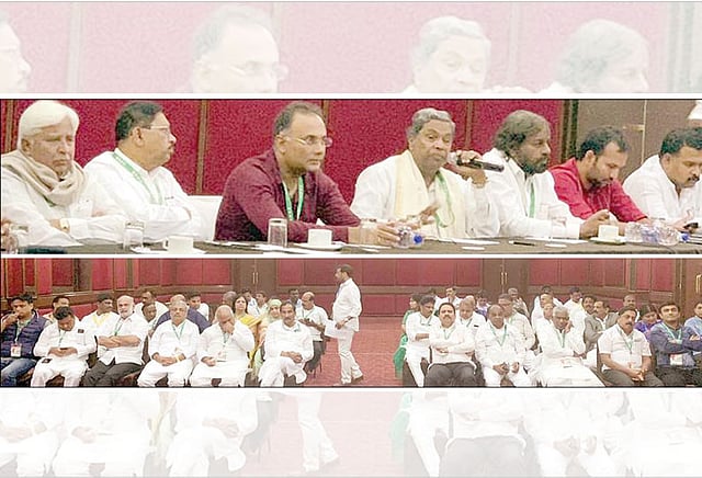 பின்னர் நேற்று முன்தினம் பெங்களூருவில் சட்டமன்ற காங்கிரஸ் கட்சி கூட்டம் சித்தராமையா தலைமையில் நடைபெற்றது. இந்த கூட்டத்தில் அதிருப்தி எம்.எல்.ஏ.க்களான ரமேஷ் ஜார்கிகோளி, நாகேந்திரா, உமேஷ் ஜாதவ், மகேஷ் கமடள்ளி ஆகிய 4 பேர் மட்டுமே பங்கேற்கவில்லை. 76 எம்.எல்.ஏ.க்கள் கலந்து கொண்டு இருந்தனர்.
