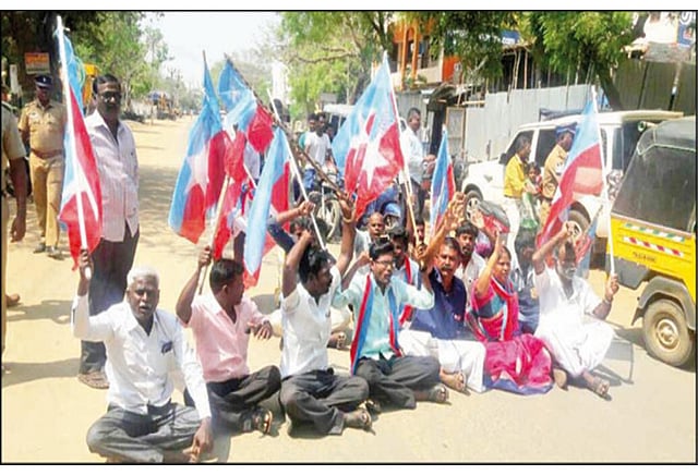 ராமராஜ்ய ரத யாத்திரைக்கு எதிர்ப்பு தெரிவித்து தமிழகம் முழுவதும் நேற்று முன்தினம் தி.மு.க., காங்கிரஸ், த.மு.மு.க., விடுதலைச் சிறுத்தைகள் கட்சியினர் போராட்டம் நடத்தினர்.
