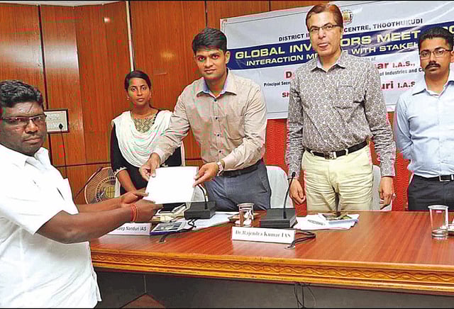 தூத்துக்குடி மாவட்டத்தில் சிறு, குறு மற்றும் நடுத்தர தொழில்களுக்கான முதலீடுகள் இலக்கு ரூ.500 கோடியாக நிர்ணயிக்கப்பட்டு உள்ளது. இதுவரை ரூ.360 கோடி இலக்கு எட்டப்பட்டு உள்ளது. இந்த மாத இறுதிக்குள் ரூ.140 கோடி இலக்கை எட்டுவதற்கு தொழில் முனைவோர்கள் முன்வர வேண்டும். சிறு குறு, நடுத்தர தொழில் தொடங்குவதற்கு மாவட்ட தொழில் மையம் மூலம் தேவையான உதவிகள் செய்யப்பட்டு வருகிறது. தொழில் துறையின் திட்டங்கள் அனைத்தும் இணையதளம் மூலம் செயல் படுத்தப்பட்டு வருகிறது.