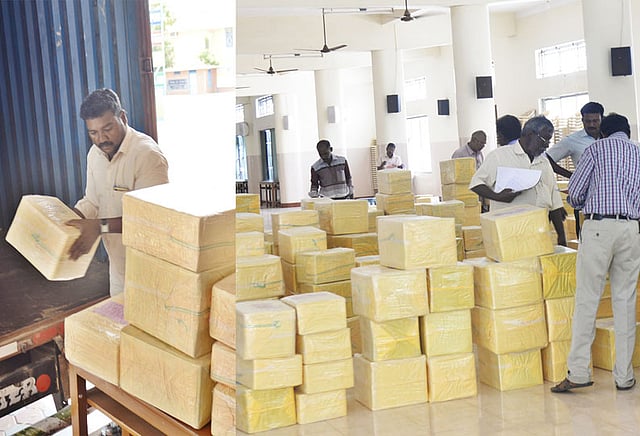இந்த தேர்வுக்கான வினாத்தாள்கள் அனைத்தும் அரசு தேர்வுகள் இயக்ககத்தில் இருந்து கடலூருக்கு நேற்று அனுப்பி வைக்கப்பட்டு இருந்தன. இந்த வினாத்தாள்களை தேர்வு வாரியத்தில் இருந்தே தேர்வுமையம் வாரியாக தேர்வர்களின் எண்ணிக்கைக்கு ஏற்ப பாடவாரியாக கட்டுகட்டாக கட்டி அனுப்பி இருந்தனர். அவற்றை கடலூரில் உள்ள ஒரு தனியார் பள்ளி கலையரங்கில் இறக்கி வைத்தனர். பின்னர் அங்கிருந்து கடலூர் கல்வி மாவட்டத்தில் உள்ள 7 வினாத்தாள் மையங்களுக்கும், விருத்தாசலம் கல்வி மாவட்டத்தில் உள்ள 5 வினாத்தாள் மையங்களுக்கும் போலீஸ் பாதுகாப்புடன் அனுப்பி வைத்தனர். பின்னர் அதனை அந்தந்த வினாத்தாள் மையங்களில் இறக்கி வைத்தனர். வினாத்தாள்கள் வைக்கப்பட்டுள்ள 12 மையங்களுக்கும் பலத்த போலீஸ் பாதுகாப்பு போடப்பட்டு உள்ளது. இந்த பணிகளை முதன்மை கல்வி அதிகாரி ராஜேந்திரன், மாவட்ட கல்வி அதிகாரிகள் இளங்கோ (விருத்தாசலம்), சுப்பிரமணியம்(கடலூர்), முதன்மை கல்வி அதிகாரியின் நேர்முக உதவியாளர் தேவநாதன் ஆகியோர் பார்வையிட்டனர்.