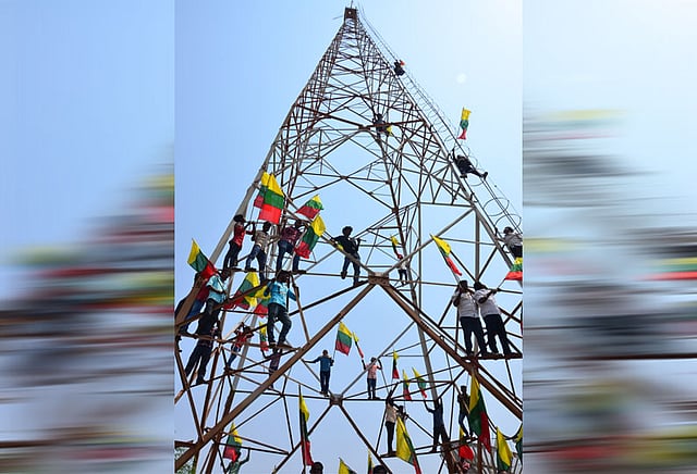 இதேபோல் வடலூரில் வடலூர் நகர செயலாளர் குமரவேல் தலைமையில் கட்சி நிர்வாகிகள் வடலூர் 4 முனை சந்திப்பு அருகே உள்ள செல்போன் கோபுரத்தில் ஏறி போராட்டம் நடத்தினார்கள். இது பற்றி தகவல் அறிந்து வந்த வடலூர் போலீசார் போராட்டம் நடத்தியவர்களிடம் சமாதான பேச்சுவார்த்தை நடத்தியதையடுத்து போராட்டம் கைவிடப்பட்டது. சிதம்பரத்தில் தமிழக வாழ்வுரிமை கட்சியின் மாவட்ட செயலாளர் முடிவண்ணன் தலைமையில் வண்டிகேட் அருகில் உள்ள செல்போன் கோபுரத்தில் ஏறி நின்று கட்சி நிர்வாகிகள் போராட்டம் நடத்தினர். இது பற்றிய தகவல் அறிந்து வந்த சிதம்பரம் டவுன் போலீசார் போராட்டம் நடத்திய முடிவண்ணன் உள்பட 5 பேரையும் கைது செய்து போலீஸ் நிலையத்துக்கு அழைத்து சென்றனர்.