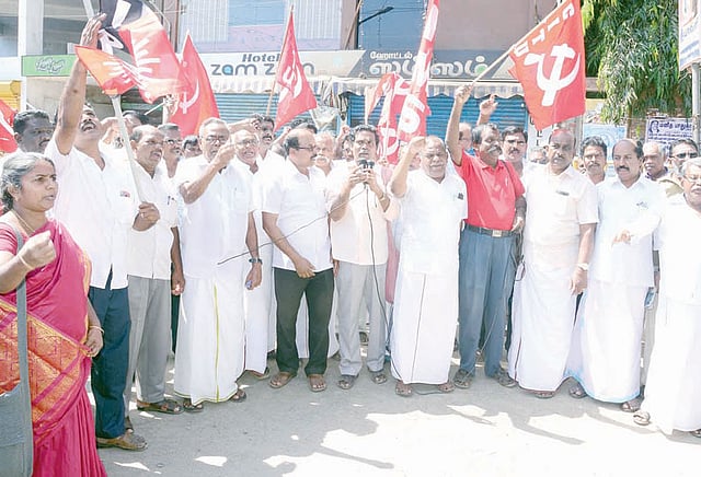 போராட்டத்துக்கு சி.ஐ.டி.யு. மாவட்ட செயலாளர் தங்கமோகன் தலைமை தாங்கினார். தொ.மு.ச. மாவட்ட செயலாளர் ஞானதாஸ், மாநில துணைச்செயலாளர் இளங்கோ, எச்.எம்.எஸ். மாவட்ட செயலாளர் முத்துக்கருப்பன், பொருளாளர் லெட்சுமணன், சி.ஐ.டி.யு. மாவட்ட தலைவர் சிங்காரன், துணைத்தலைவர் அந்தோணி, மாநில செயலாளர் ஐடாஹெலன் உள்பட பலர் கோரிக்கைகளை வலியுறுத்தி பேசினர்.