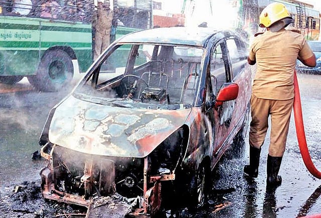 காரை டிரைவர் சக்திவேல்(29) என்பவர் ஓட்டினார். போரூர் சுங்கச்சாவடி அருகே சென்ற போது திடீரென காரின் முன் பகுதியில் இருந்து புகை வந்தது. இதனால் அதிர்ச்சி அடைந்த டிரைவர் சக்திவேல், காரை சாலை ஓரமாக நிறுத்தி விட்டு கீழே இறங்கி பார்த்தார். அப்போது காரில் இருந்து அதிக அளவில் புகை வரத்தொடங்கியது. உடனே காரில் இருந்த 2 பெண்களும் கீழே இறங்கி விட்டனர். அதற்குள் காரில் புகை வந்த இடத்தில் தீப்பிடித்து கார் முழுவதும் தீ பரவியது. இதுபற்றி தகவல் அறிந்து வந்த மதுரவாயல் தீயணைப்பு வீரர்கள், காரில் எரிந்த தீயை போராடி அணைத்தனர். ஆனாலும் கார் முற்றிலும் எரிந்து நாசமானது. காரில் புகை வந்த உடன் 3 பேரும் கீழே இறங்கிவிட்டதால் அதிர்ஷ்டவசமாக உயிர் தப்பினர்.