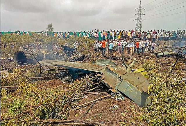 இந்த விமானம் பிம்பல்கான் அருகே நடுவானில் பறந்தபோது திடீரென வயல்வெளியில் விழுந்து நொறுங்கியது. முன்னதாக விமானத்தில் இருந்த விமானிகள் இருவரும் பாராசூட் மூலம் குதித்து தப்பினர். இதனால் இந்த சம்பவத்தில் உயிரிழப்புகள் தவிர்க்கப்பட்டது.