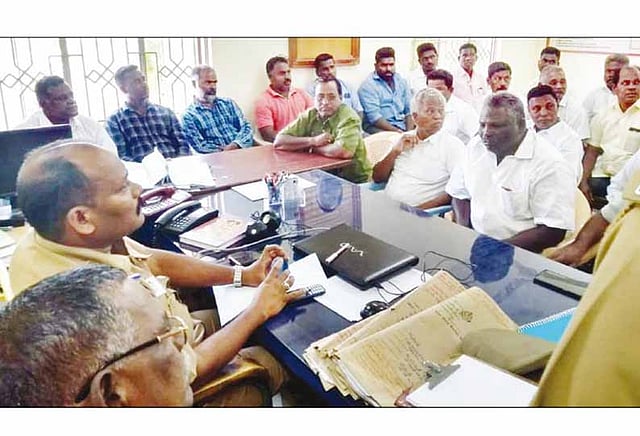 அந்த கூட்டத்தில் அரியாங்குப்பம் போலீஸ் இன்ஸ்பெக்டர் செந்தில்குமார் பேசும்போது, உங்களின் பிரச்சினைகளை பேசி தீர்த்துக்கொள்ள வேண்டும் என்றும், மோதலில் ஈடுபடக்கூடாது என்றும் கூறினார். ஒருதரப்பினர் மீன்பிடித்துக் கொண்டு இருப்பதை தெரிந்து கொண்டு மற்றொரு தரப்பினர் அங்கு வலை விரிக்கக்கூடாது. கடலுக்குள் ஏற்படும் பிரச்சினையை கிராம மக்களிடையேயான மோதலாக மாற்றாமல் தீர்வு காண வேண்டும். அதையும் மீறி மோதலில் ஈடுபட்டால் கடும் நடவடிக்கை எடுக்கப்படும் என்று எச்சரித்தார்.