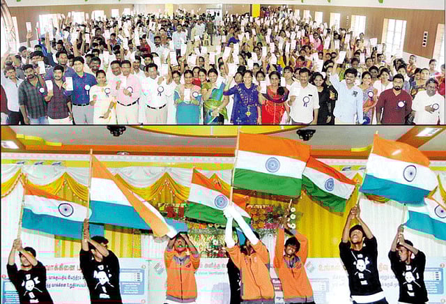 தொடர்ந்து வாக்காளர் விழிப்புணர்வு கை ரேகைகள் பதிவு (ha-nd im-p-r-ess-i-on) செய்து உறுதி ஏற்கும் இயக்கத்தினை கலெக்டர் தொடங்கி வைத்தார். இதில் கல்லூரி மாணவ, மாணவிகள் தங்கள் கை ரேகைகளை பதிவு செய்தனர். பின்னர் பல்வேறு கல்லூரி மாணவ, மாணவிகள் மூலமாக நடைபெற்ற வில்லுப்பாட்டு, பட்டிமன்றம், நடனம், நாடகம் ஆகிய வாக்காளர் விழிப்புணர்வு கலை நிகழ்ச்சிகள் நடந்தன.