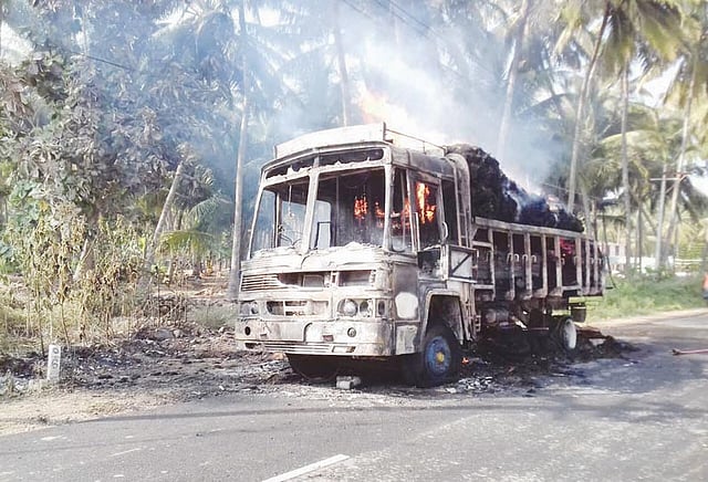 பொள்ளாச்சியை சேர்ந்தவர் திருமூர்த்தி (வயது 47), லாரி டிரைவர். இவர், நேற்று மதியம் சுல்தான்பேட்டை ஒன்றியம் செஞ்சேரிமலை பகுதியில் இருந்து லாரியில் தென்னை நார் பாரம் ஏற்றிக்கொண்டு பொள்ளாச்சிக்கு புறப்பட்டார். வரும் வழியில் உள்ள ஒரு எடை நிலையத்தில் லாரியை நாருடன் மொத்த எடை போட்டு விட்டு அங்கிருந்து சிறிது தூரத்தில் லாரியை நிறுத்திவிட்டு சாப்பிட சென்றார்.