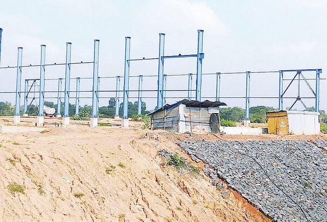 இந்நிலையில் இந்த குப்பைகளை மறுசுழற்சி செய்வதற்காக செங்குந்தபுரம் அருகே உள்ள புதுக்குடி ஊராட்சியில் ரூ.7 கோடியே 22 லட்சம் மதிப்பீட்டில் தூய்மை இந்தியா இயக்கத்தின் கீழ் திடக்கழிவு மேலாண்மை திட்டத்தின் சார்பில் நவீன கலவை உரக்கிடங்கு அமைப்பதற்காக கல்லுக்குழி என்ற இடத்தில் பணி தொடங்கப்பட்டது. சுமார் 15 அடி உயரத்திற்கு கடந்த 2016-ம் ஆண்டு அடித்தளம் அமைத்து, அதன் மேலே பெரிய, பெரிய தூண்கள் அமைக்கப்பட்டது.