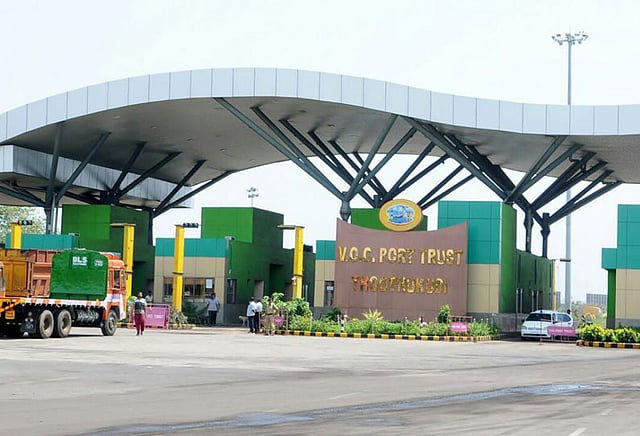 தூத்துக்குடி வ.உ.சி. துறைமுகத்தில் 2-ம் எண் புயல் எச்சரிக்கை கூண்டு ஏற்றப்பட்டு உள்ளது.
