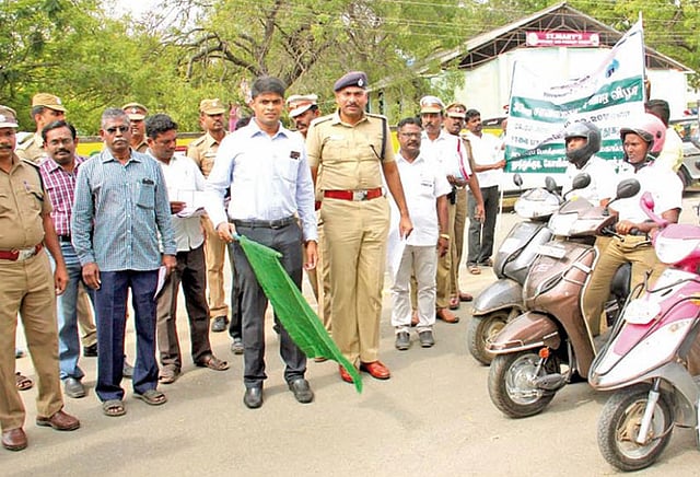 தூத்துக்குடி மாவட்ட வட்டார போக்குவரத்து துறை சார்பில் வருகிற 10-ந் தேதி வரை சாலை பாதுகாப்பு வார விழிப்புணர்வு விழா நடத்தப்படுகிறது. இந்த விழிப்புணர்வு விழாவின் தொடக்கமாக நேற்று காலையில் சாலை பாதுகாப்பு விழிப்புணர்வு மோட்டார் சைக்கிள் பேரணி நடத்தப்பட்டது. ஆயுதப்படை மைதானம் அருகே தொடங்கிய இந்த பேரணியை மாவட்ட கலெக்டர் சந்தீப் நந்தூரி கொடி அசைத்து தொடங்கி வைத்தார். மாவட்ட போலீஸ் சூப்பிரண்டு முரளி ரம்பா முன்னிலை வகித்தார்.