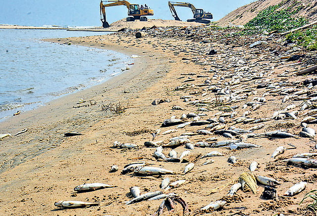 சென்னை பெசன்ட் நகர் அருகே உள்ள ஊரூர் குப்பம் அருகில், அடையாறு முகத்துவாரத்தில் உள்ள கடலோரத்தில் சுமார் ஒரு கிலோ மீட்டர் தூரத்துக்கு கிழங்கா, மடவை, ஜிலேபி, கெண்டை மீன்கள் ஆயிரக்கணக்கானவை செத்து கரையில் ஒதுங்கின. இவை அனைத்தும் கடலில் வாழும் மீன்கள் தான்.