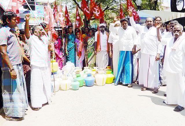 இதனால், ஆத்திரம் அடைந்த பொதுமக்கள் மற்றும் அகில இந்திய விவசாய தொழிலாளர் சங்கத்தினர் குடிநீர் தட்டுப்பாட்டை தீர்க்ககோரி காலிக்குடங்களுடன் முசிறி கோட்டாட்சியர் அலுவலகத்தை நேற்று முற்றுகையிட்டு கோஷங்கள் எழுப்பினர். இதனால் அங்கு பரபரப்பு ஏற்பட்டது.