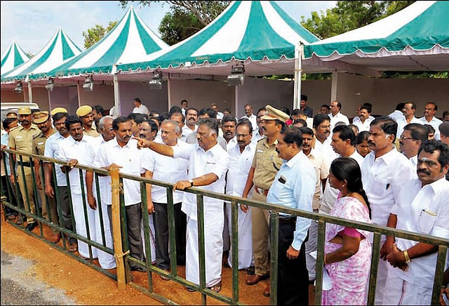விழா ஏற்பாடுகளை துணை முதல்-அமைச்சர் ஓ.பன்னீர்செல்வம் நேற்று நேரில் வந்து பார்வையிட்டு ஆய்வு செய்தார். பாதுகாப்பு ஏற்பாடுகள் மற்றும் விழா ஏற்பாடுகள் குறித்து மாவட்ட கலெக்டர் வெங்கடாசலம், மாவட்ட போலீஸ் சூப்பிரண்டு பாஸ்கரன் மற்றும் அனைத்து துறை அதிகாரிகளுடன் ஓ.பன்னீர்செல்வம் ஆலோனை நடத்தினார்.
