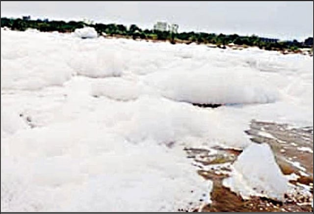 இதை அறிந்த மக்கள் அதிர்ச்சியுடனும், ஆச்சரியத்துடனும் திரண்டு வந்து பார்த்தனர். அப்போது காற்று பலமாக வீசியதால் ஆற்றுத்தண்ணீர் மீது படர்ந்திருந்த நுரை ஆங்காங்கே பறந்தது.