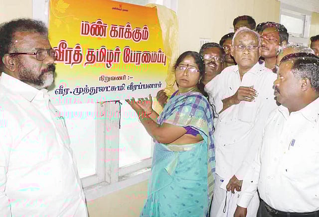 சந்தன கடத்தல் வீரப்பனின் 66-வது பிறந்தநாள் விழா சேலத்தில் உள்ள பார்த்தசாரதி அரங்கத்தில் நேற்று நடைபெற்றது. விழாவுக்கு வீரப்பன் மனைவி முத்துலட்சுமி தலைமை தாங்கினார். நடிகர் பெஞ்சமின், கும்பகோணத்தை சேர்ந்த முருகராஜ் ஆகியோர் முன்னிலை வகித்தனர். வக்கீல் மாயன் வரவேற்று பேசினார். இதைத்தொடர்ந்து முத்துலட்சுமி மண் காக்கும் வீரத்தமிழர் பேரமைப்பு என்ற புதிய அமைப்பை தொடங்கி வைத்தார். பின்னர் அவர் நிருபர்களிடம் கூறியதாவது:-