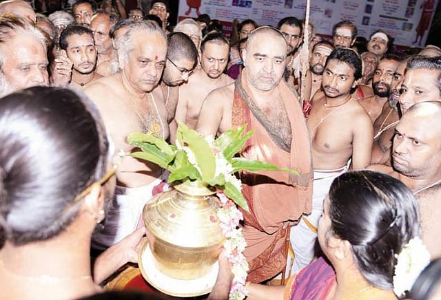 திருவானைக்காவல் ஜம்புகேஸ்வரர் அகிலாண்டேஸ்வரி கோவில் கும்பாபிஷேகம் மற்றும் யாகசாலை பூஜைகளில் கலந்து கொள்வதற்காக காஞ்சி சங்கராச்சாரியார் விஜயேந்திர சரஸ்வதி சுவாமிகள் நேற்று இரவு திருச்சி வந்தார். அவருக்கு திருச்சி சமயபுரம் அருகே பக்தர்கள் சார்பில் வரவேற்பு அளிக்கப்பட்டது. பின்னர் திருவானைக்காவல் கோவில் முன்பு நிர்வாகம் சார்பில் பூரணகும்ப மரியாதை அளிக்கப்பட்டது. தொடர்ந்து சங்கரமடம் வாசலில் மடத்து சீடர்கள் மற்றும் வேதபாடசாலை மாணவர்கள் சார்பில் வரவேற்பு அளிக்கப்பட்டது. அவர் ஒரு வாரம் தங்கி கும்பாபிஷேக நிகழ்ச்சிகளில் பங்கேற்கிறார். திருவானைக் காவல் சங்கர மடத்தில் முகாமிட்டுள்ள சுவாமிகள், தினமும் காலை, மாலை இருவேளைகளிலும் உலக நன்மைக்காக திரபுரசுந்தரி சமேத சந்திரமவுலீஸ்வரர் பூஜைகள் நடத்தி பக்தர்களுக்கு ஆசி வழங்குகிறார். அப்போது பக்தர்கள் நடத்தும் பாதபூஜையிலும் கலந்து கொள்கிறார். 9-ந் தேதி நடைபெறும் பரிவார மூர்த்திகள் யாகசாலை மற்றும் கும்பாபிஷேகம், 12-ந் தேதி நடைபெறும் பிரதான சன்னதிகள் யாகசாலை மற்றும் கும்பாபிஷேகம் ஆகியவற்றிலும் கலந்து கொள்கிறார். முகாம் நாட்களில் அன்னதானத்திற்கும் ஏற்பாடு செய்யப்பட்டுள்ளது.