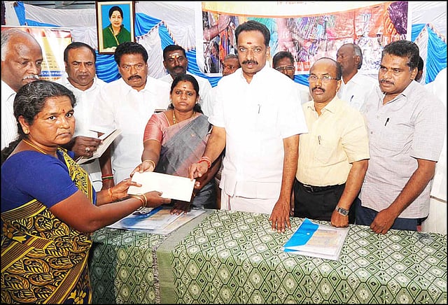 கரூர் மாவட்டம் உப்பிடமங்கலம் மாரியம்மன் கைத்தறி நெசவாளர் கூட்டுறவு சங்கத்தில் அரசு நலத்திட்ட உதவிகள் வழங்கும் விழா நேற்று நடைபெற்றது. இதற்கு மாவட்ட வருவாய் அதிகாரி சூர்யபிரகாஷ் தலைமை தாங்கினார். போக்குவரத்து துறை அமைச்சர் எம்.ஆர்.விஜயபாஸ்கர் சிறப்பு விருந்தினராக கலந்து கொண்டு, ரூ.50 ஆயிரத்தில் கைத்தறி உபகரணங்கள் மற்றும் 25 நெசவாளர்களுக்கு முத்திரா கடனுதவிகள் ரூ.7 லட்சத்து 50 ஆயிரத்தை பயனாளிகளுக்கு வழங்கி பேசினார். அப்போது அவர் பேசியதாவது:-