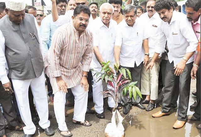 கன்டோன்மென்ட் ரெயில் நிலையம் அருகே சாலையில் உள்ள குழியில், எடியூரப்பா உள்ளிட்ட தலைவர்கள் செடியை நட்டு நூதன முறையில் பெங்களூரு மாநகராட்சிக்கு தங்களின் எதிர்ப்பை தெரிவித்தனர். அப்போது எடியூரப்பா நிருபர்களிடம் கூறியதாவது:-