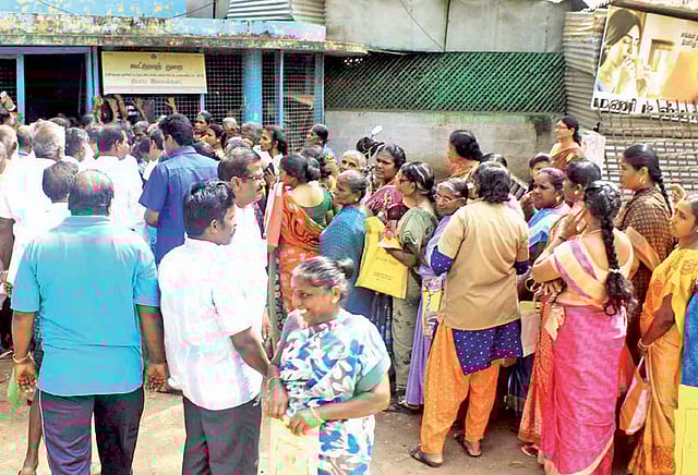 சில கடைகளில் பொங்கல் பரிசு தொகுப்புகள் தயார் நிலையில் இருந்தாலும், ஆயிரம் ரூபாய் பொதுமக்களுக்கு கொடுக்காமல் பரிசு தொகுப்புகளை மட்டும் வழங்க முடியாது என்று ஊழியர்கள் குடும்ப அட்டைதாரர்களை மறுநாள்(இன்று) வருமாறு சொல்லி திரும்பி அனுப்பினர். பாளையங்கோட்டை பெருமாள்புரம் உள்ளிட்ட சில ரேஷன் கடைகளில் பொதுமக்கள் நீண்ட வரிசையில் நின்று பொங்கல் தொகுப்புகளை வாங்கி சென்றனர்.