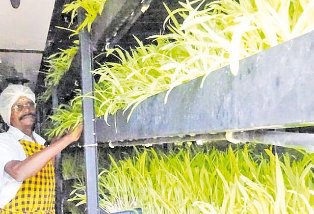 இதற்கு ஹைட்ரோபோனிக் பசுமை வீடு உருவாக்கவேண்டும். அது மின்சாரத்தில் இயங்கக்கூடியதாகும். அதற்கு நாள் ஒன்றுக்கு சுமார் 60 முதல் 70 யூனிட் மின்சாரம் தேவைப்படும். இதற்கு உதவ எந்திரமும் உள்ளது. அது பற்றி விரிவாக காண்போம்!