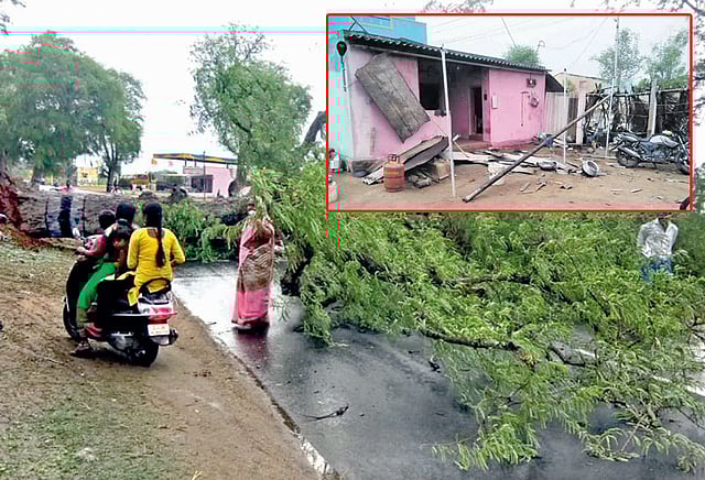 தர்மபுரி மாவட்டம் பென்னாகரம் மற்றும் சுற்று வட்டார பகுதிகளில் நேற்று சூறைக்காற்று மற்றும் இடி-மின்னலுடன் மழை பெய்தது.