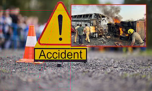 தெலுங்கானாவின் ஜெகதியால் நகரில் இருந்து, ஆந்திர பிரதேசத்தின் நெல்லூர் மாவட்டத்தில் உள்ள காளிகிரி நோக்கி 35 பயணிகளுடன் சென்ற தனியார் சொகுசு பஸ், மர்காபுரம் மாவட்டத்தில் ராயவரம் அருகே சென்றபோது, டீசல் ஏற்றி சென்ற லாரி மீது மோதியது.