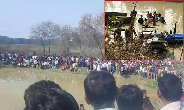 உத்தர பிரதேசத்தின் காஸ்கஞ்ச் மாவட்டத்தில் இன்று டிராக்டர் ஒன்று கட்டுப்பாட்டை இழந்து சாலையோரத்தில் உள்ள குளத்திற்குள் விழுந்து விபத்துக்குள்ளானது. இதில் டிராக்டரின் டிரெய்லரில் இருந்த 7 குழந்தைகள், பெண்கள் உள்ளிட்ட 22 பேர் பரிதாபமாக உயிரிழந்தனர். சிலர் காயமடைந்தனர்.