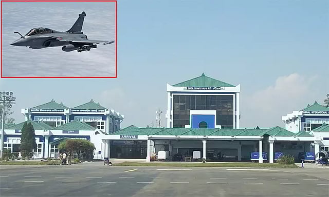 அத்துடன் விமானப்படைக்கும் தகவல் தெரிவிக்கப்பட்டது. இதையடுத்து அருகில் உள்ள விமானப்படை தளத்தில் இருந்து இரண்டு ரபேல் போர் விமானங்கள் வரவழைக்கப்பட்டன. அந்த விமானங்களில் மிகவும் தாழ்வாக பறந்து சென்று, விமான நிலையம் மற்றும் விமானம் பறக்கக்கூடிய வான் பகுதி முழுவதும் கண்காணித்தனர். ஆனால் சந்தேகப்படும்படியாக எந்த பொருளும் தென்படவில்லை.