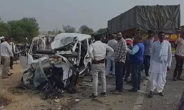 ராஜஸ்தான் மாநிலம் சூரு மாவட்டம் ரத்தன்புரா பகுதியில் இன்று கார் சென்றுகொண்டிருந்தது. அந்த காரில் 8 பேர் பயணித்தனர்.