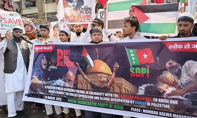 இந்நிலையில், மராட்டிய மாநிலத்தில் பாலஸ்தீனத்திற்கு ஆதரவாக எஸ்டிபிஐ கட்சி சார்பில் கடந்த 28ம் தேதி போராட்டம் நடைபெற்றது. தானே மாவட்டம் முப்ரா நகரில் இப்போராட்டம் நடைபெற்றது.