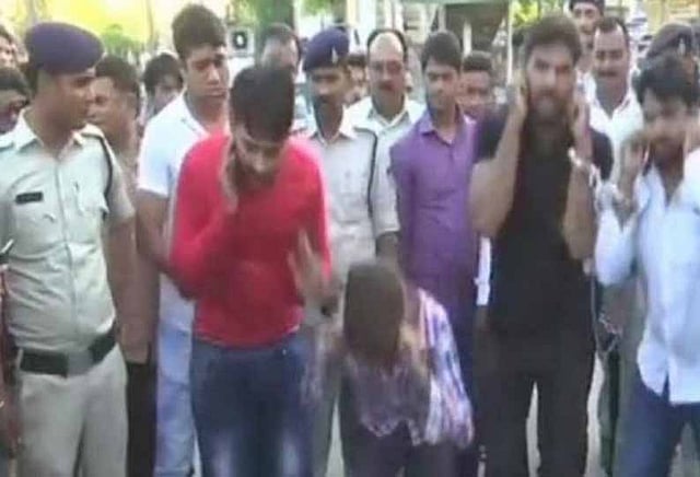 அதன்பின்னர், ரம்யாவை சமாதானப்படுத்தி தனது நண்பனான சோனு தாங்கி (21) என்பவன் தங்கியிருந்த அறைக்கு அழைத்து சென்றுள்ளார். ரம்யா அழைத்து வருவதற்கு முன்னர், சோனு திராஜ் ராஜ்புத் (26) மற்றும் சிமர் ராஜ்புத் (25) ஆகிய இருவரையும் அங்கு வருமாறு கூறி சென்றுள்ளான். அதன்படி, ரம்யாவை அறைக்கு அழைத்து சென்று 4 பேரும் சேர்ந்து பாலியல் பலாத்காரம் செய்துள்ளனர். இந்த சம்பவம் தொடர்பாக குற்றவாளிகள் 4 பேரின் மீது பாலியல் வழக்கு பதிவு செய்யப்பட்டுள்ளது. குற்றவாளிகளை போலீசார் ஊர்வலமாக அழைத்து சென்றபோது, ரோட்டில் உள்ள மக்கள் 4 இளைஞர்களையும் அடித்து உதைத்தனர்.
